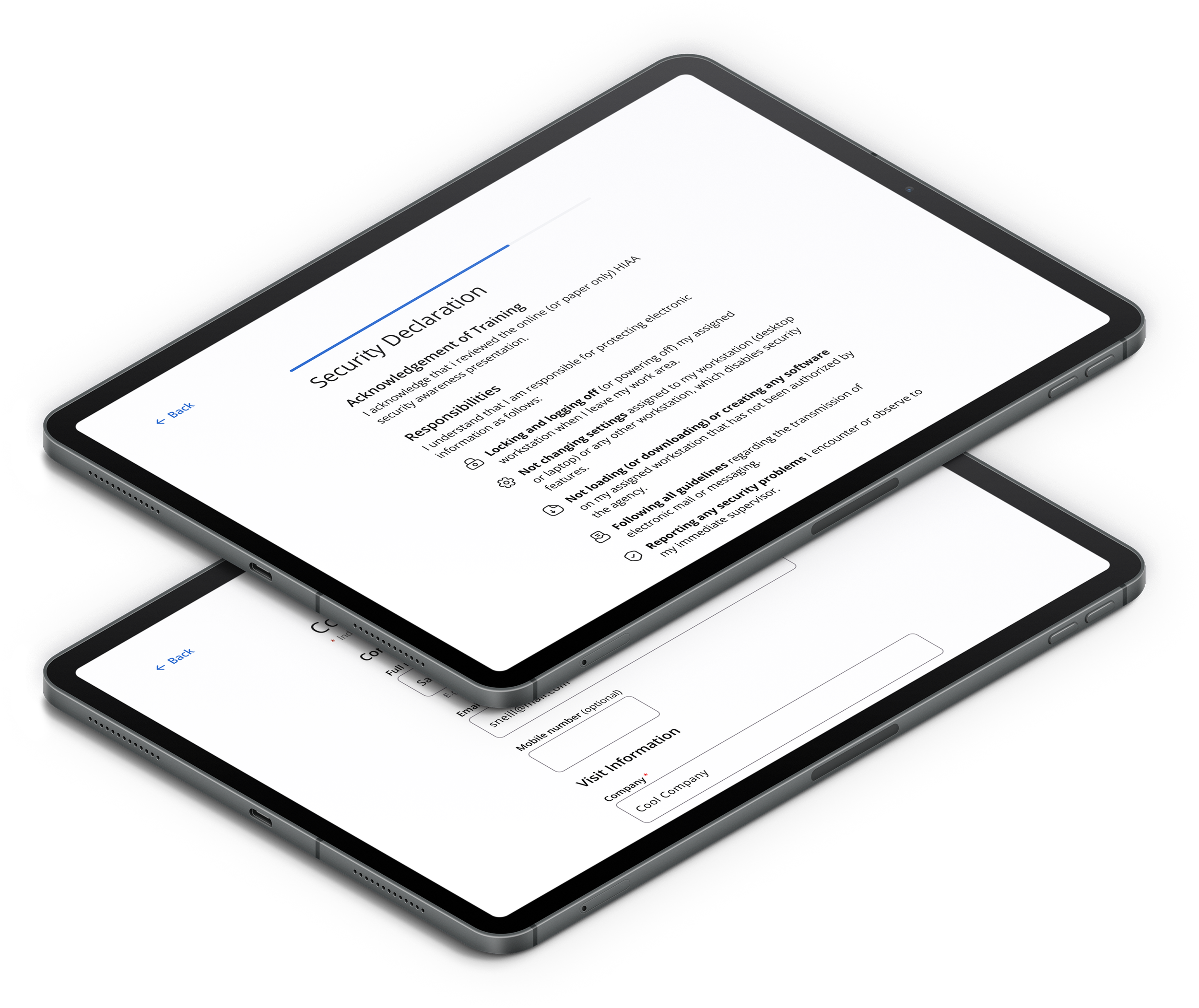 Enhance the current visitor management kiosk experience (Tablet solution) by embedding the contractor sign up, onboarding and training process in the check-in flow.